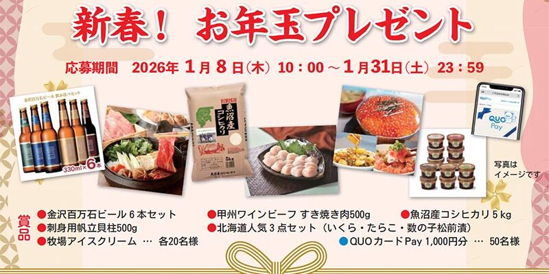 - 【2026 新春お年玉プレゼント】1/8(木) 10:00 ~ 1/31(土) 23:59 まで