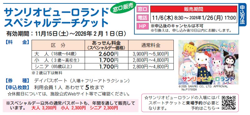 【窓口販売】サンリオピューロランド スペシャルデーチケット