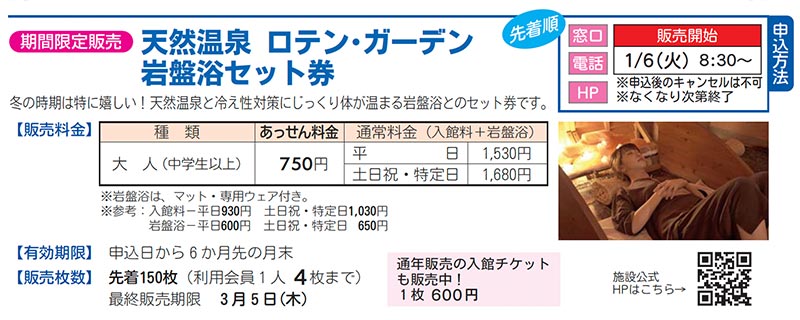 【先着順】天然温泉ロテン・ガーデン 岩盤浴セット券