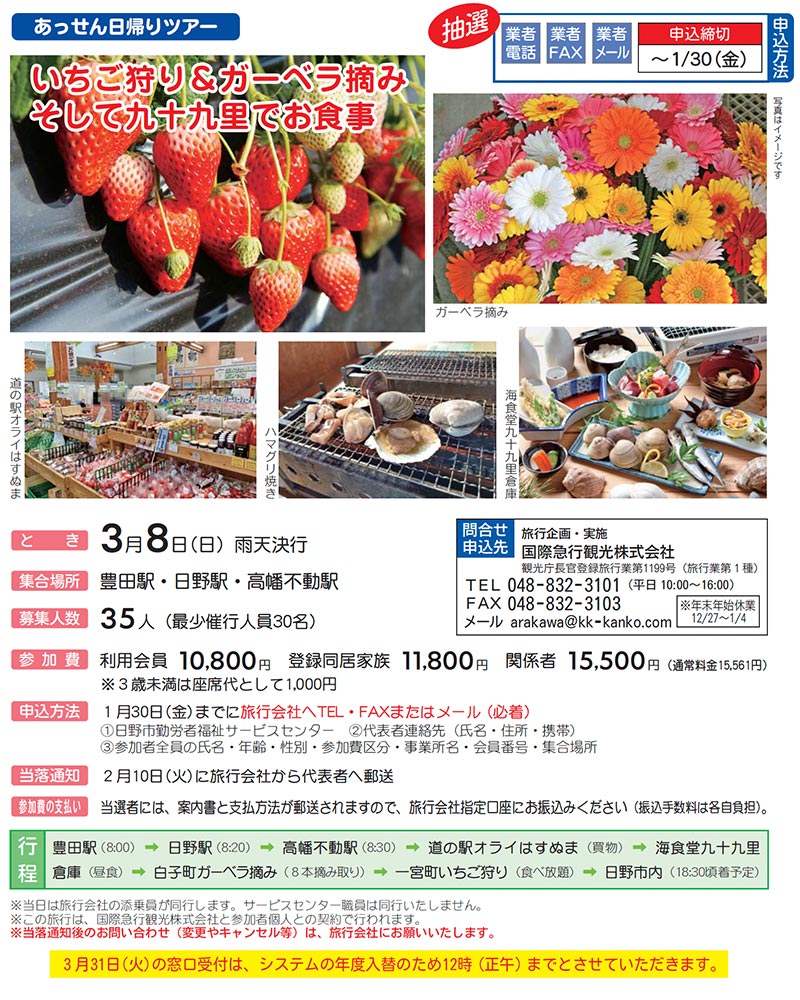 【抽選】会報142号 いちご狩り&ガーベラ摘み そして九十九里でお食事