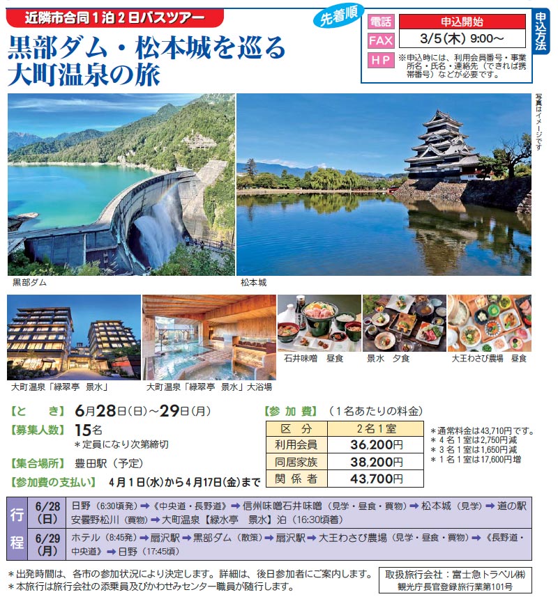 【先着順】会報143号 黒部ダム・松本城を巡る大町温泉の旅